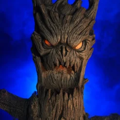 Headless Horseman static display prop is elegantly dressed with an elaborate metal-looking gauntlet. He holds his Jack o Lantern head that glows and flickers!