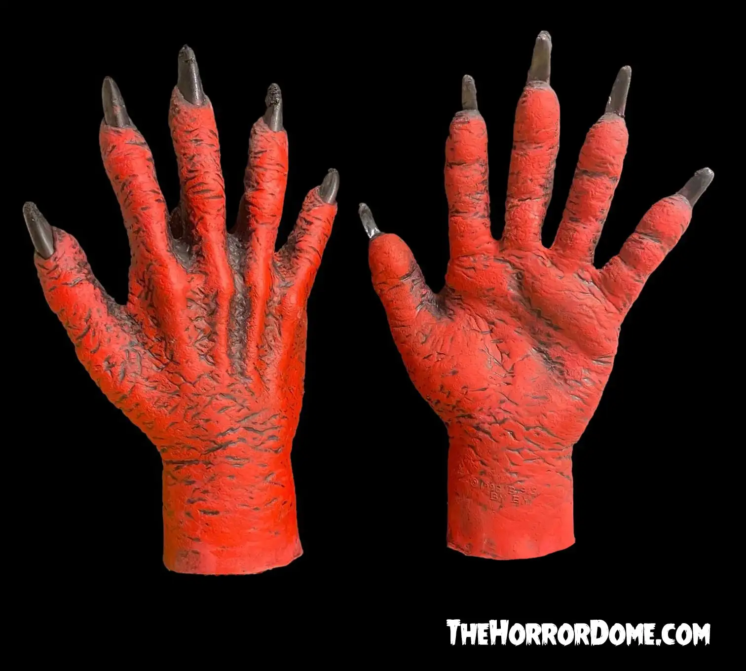 NEW for 2022Â these unique creepy latex demon hands have fingers that move with yours! Open palm design allows for cool comfortable wear. You have to feel and wear them to believe it. Goes great with our Bedlam Demon Mask. will fit a person up to 230 Lbs.