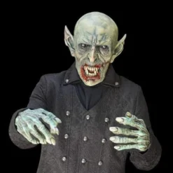 This menacing enchantress stands before her bubbling black cauldron with flickering “smoldering coals” while holding a small blond-haired toddler by the feet. Includes 400W Fog Machine and hose attachment for added spooky ambiance! Once activated, the fog will begin to swirl in her green bubbling cauldron as the witch’s eyes light up, head and torso turn from side-to-side and the child screams and flails about! The Witch Prop will say one of three sayings with each activation! Activation options: steady-on, Step-Here pad, and infra-red sensor (works up to 6.5 feet away and works in all lighting conditions). Includes a standard UL power adapter which plugs into any 110 outlet. Assembly required, easy to follow instructions are included. Assembled dimensions are 80″H x 40″W x 45″D. Animation right to left uses 36 inches of space. Prop will say one of three sayings with each activation: “(evil laughter)”; “See what happens when you wander into the woods alone. Let this be a lesson to you – and a meal for me! Eh heheheh!”; ” You will make a tasty meal. Do you have any brothers or sisters that would like to visit me as well? Eh heheheh!”