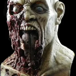 With a torn open face and a smashed-in half jaw, the Road Kill Zombie mask is a gruesome sight to behold. Bulging, milky, undead eyes seem ever fixed on the next meal, while a massive wound covers the right side of this poor pedestrian’s face. Moldy, gray skin and a hairless, bald dome round out this unique character’s look.