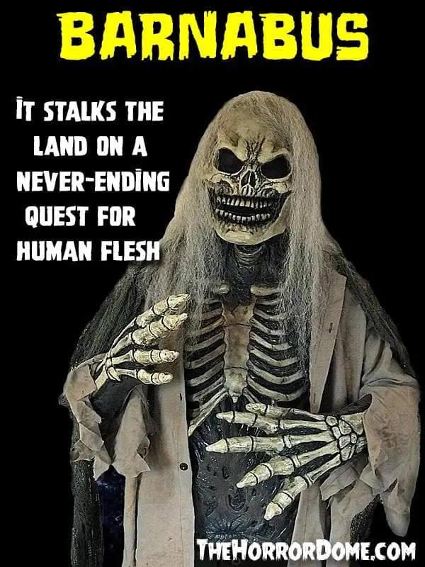 Risen from the dead, the Skeletal Remains Skeleton also know as Barnabus stalks the land on a never-ending quest for fresh human brains. Featuring cobweb-like hair, long menacing fingers, and a skeleton torso with decomposing flesh, movie-quality. Our Skeletal Remains Skeleton Halloween costumes are bone-chillingly realistic. Team up with friends and terrorize the neighborhood as a family of Skeletons. Of course, no haunted house is complete without a Living Skeleton in residence. Freak out your guests with one of the expertly crafted mask and bodysuit combinations. Crafted by The Horror Dome, these incredibly detailed Skeleton suits will make your amateur flick look like a big budget film.