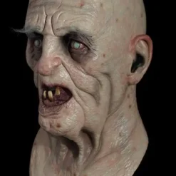 This collectors-quality Halloween mask is intricately detailed by craftspeople with decades of experience in the haunt industry. A movie-quality design, realistic hair and an off-putting pale skin tone will have your guests feeling quite uneasy. This gruesome female makes a wonderful addition to the cast of any freak show or haunted house, and will send shivers down the spine of the local trick or treaters as they gingerly approach your porch in search of delicious candy. Manufactured from durable materials, you’ll get many seasons of use out of this hideous wench. Add something truly special to your collection today.
